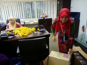 Tenaga yang mereka taburkan tanpa ada balasannya. namun mereka berusaha untuk memberikan khidmat yang terbaik walaupun dalam tempoh yang sangat terhad. Inilah antara staf saya yang telah bertungkus lumus menyiapkan meletakkan reben di kotak hadiah untuk pegawai JPWPKL yang bersara.